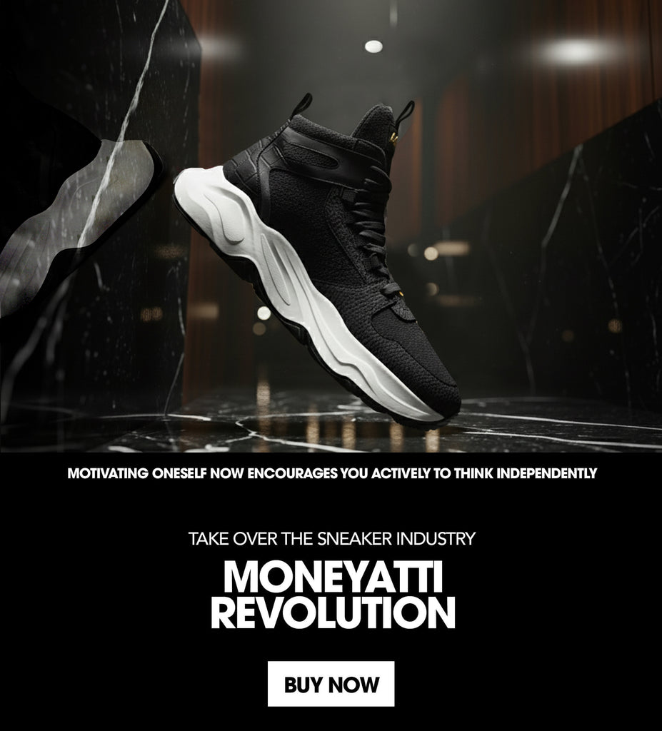 Luxury Sporty Designer Sneaker by Moneyatti, featuring innovative sock-design and XL ultralight tech sole.