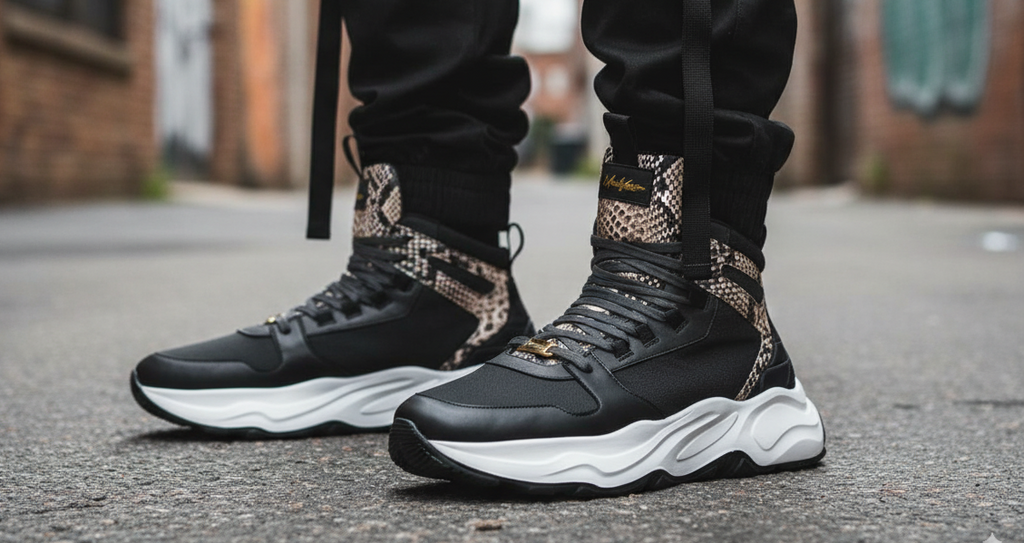 The unique fashion high top sneaker from Moneyatti - combines a sleek, detailed design with premium craftsmanship.